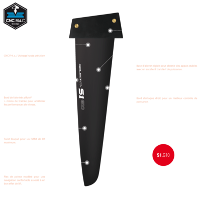 The S1 G10 is offered (from 37 to 45 cm) to meet the demands of WINDSURF centres and occasional enthusiasts who do not want to invest in more technical fins.