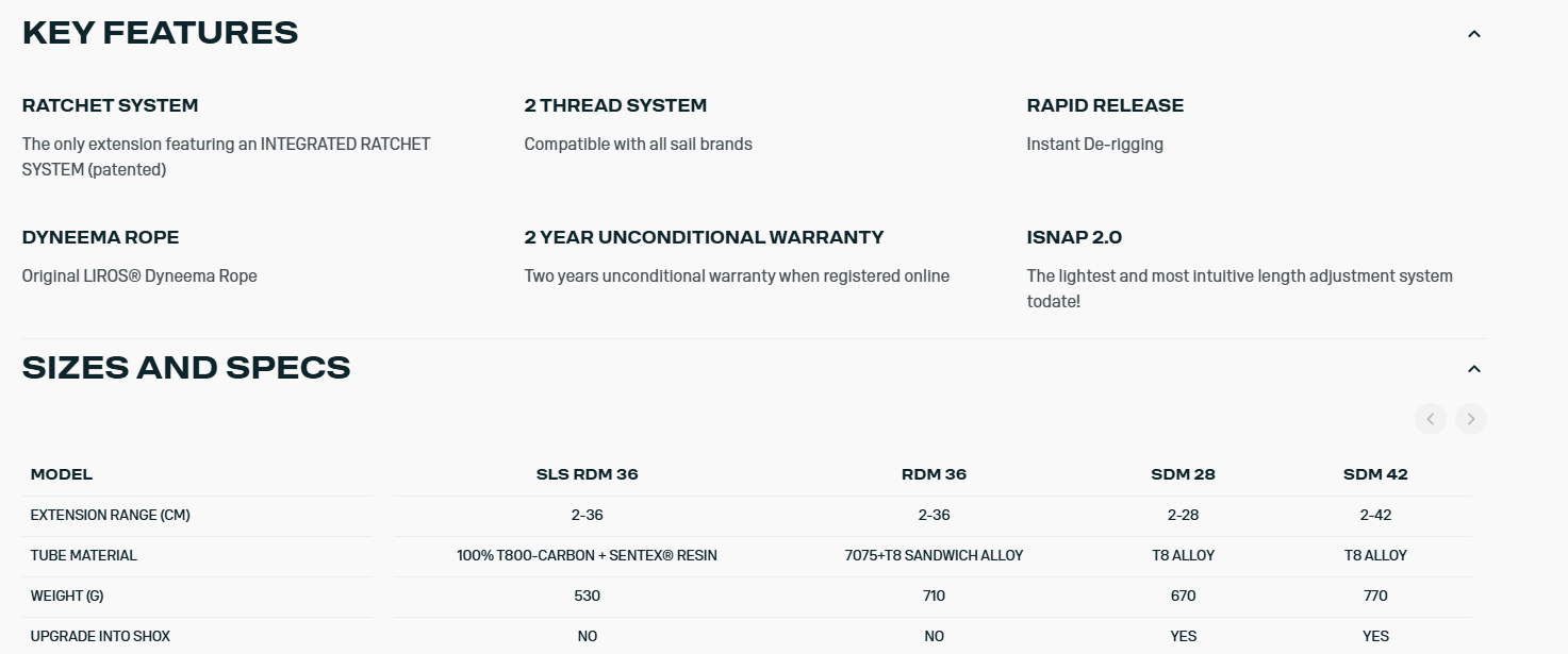 An inspiring (r)evolution – the POWER.XT 2.0 can do much more and do it better than the previous model. And as POWER.XT 2.0 AERO RDM 34 it is also the most lightweight ratchet extension of all time! Beyond the basic idea, the POWER.XT 2.0 has almost nothing in common with the previous model any more. From the extremely solid ratchet mechanism plus lever to the simplified release mechanism, the high-strength Lyros® Dyneema harness downhaul lines and the option to retrofit the damper function – everything has been radically upgraded. For many years, the POWER.XT has been the benchmark when it comes to extensions with trimming tools. Those who use it will never want to do without it again. Thanks to the integrated lever, it overcomes even the strongest downhaul forces, enabling perfect re-trimming or fine-tuning even when on the water. Even children could handle the extreme luff tension of modern slalom sails, each profile can be adjusted to millimetre precision in a matter of seconds. The 15 cm long lever and the ratio of 1:60 enable trimming without any noticeable effort.