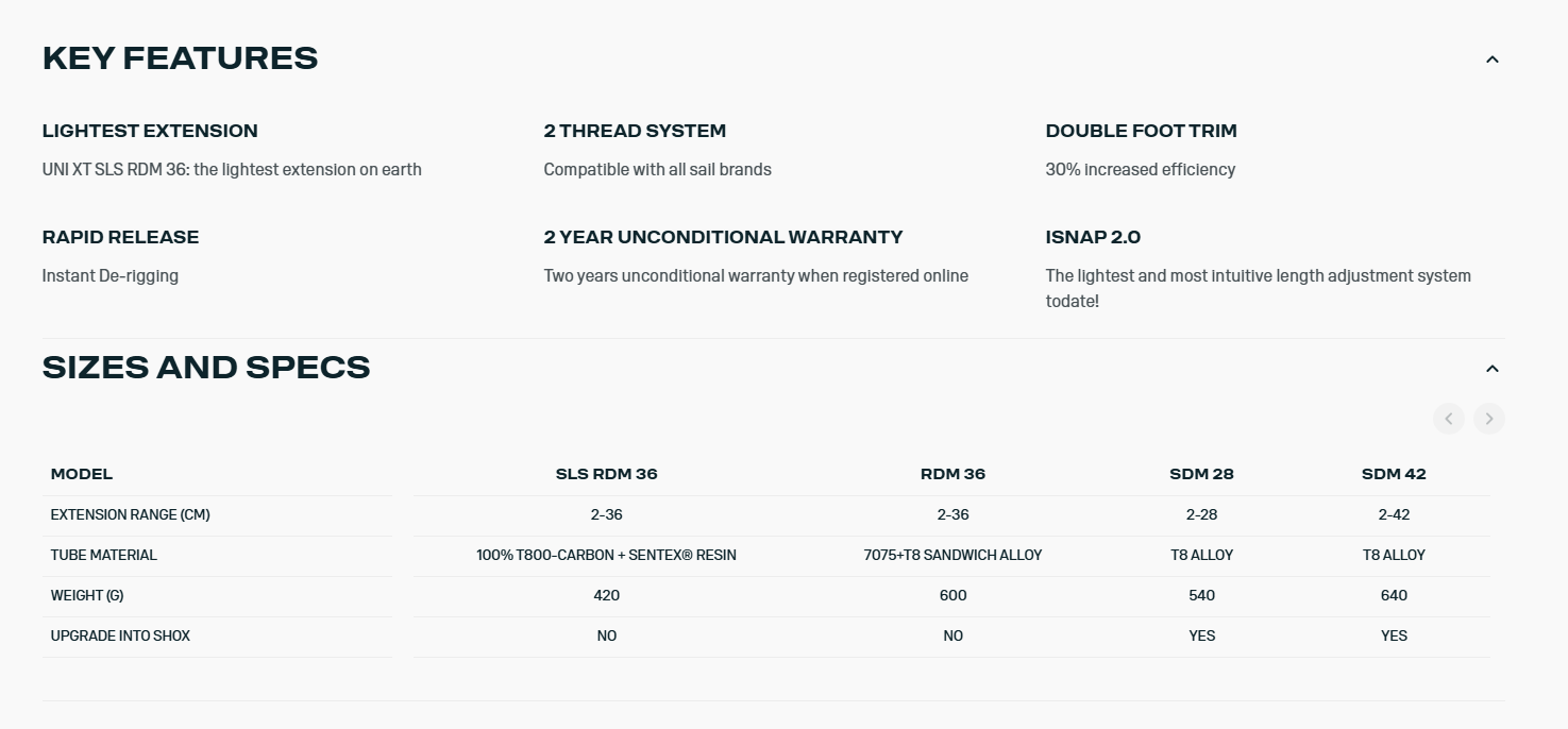 THE FIRST AND ONLY EXTENSION ON THE MARKET WHICH IS COMPATIBLE WITH ALL SAIL BRANDS AND OFFERS 30% MORE TRIMMING EFFICIENCY THAN ANY OTHER STANDARD EXTENSION OUT THERE!
