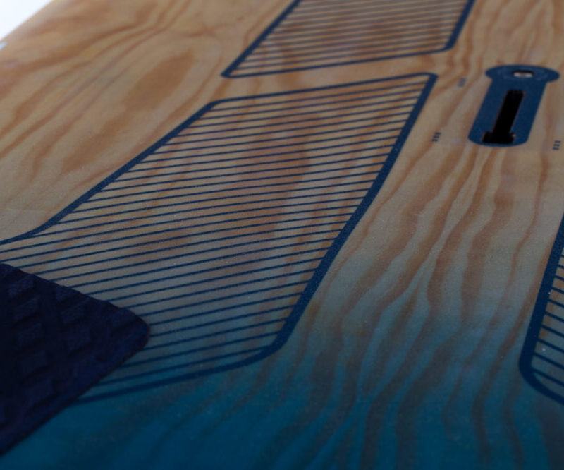 Developed by Jean Louis Colmas in 1984, Wood Technology became Starboard’s trademark construction in 1995. Wood Technology remains a favourite for riders preferring more comfort, more control and the unique crisp feel of an original Starboard. It’s time to bring back this technology while reducing our CO2 footprint. Full wood sandwich lamination of 0.6mm Australian Pinewood over modern, recyclable 3mm PET core foam ensures durability and comfort in a good strength to weight ratio. Today’s wood is less visible in modern graphics; UV protected by fresh blue paint and stickers that compliment the natural grain with a really nice effect. A classy re-edition of a classic Starboard Original.